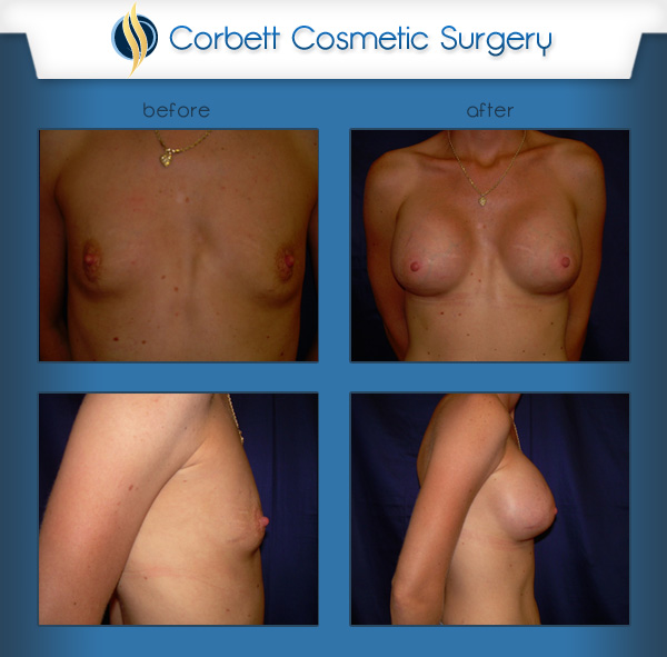 This is a 30 year old patient who is 5'3" and 106 lbs. She chose a 397cc silicone filled implant that was placed over the muscle. *
